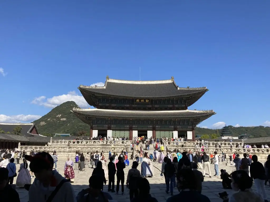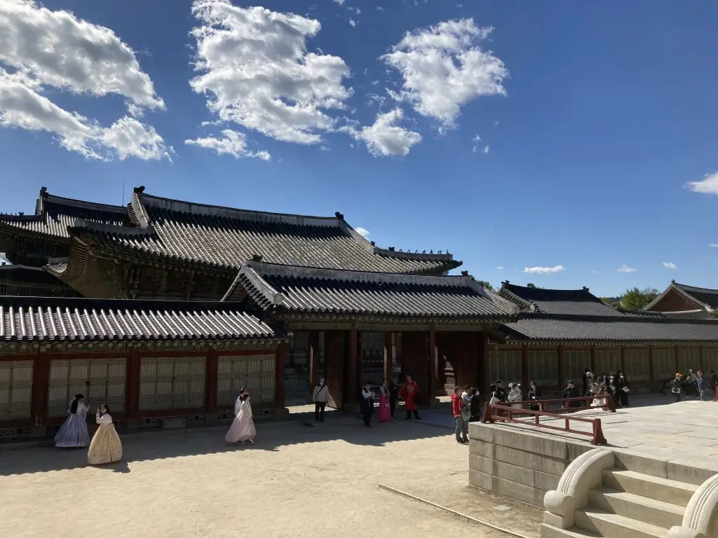 Le premier toutefois était très bien placé, pile entre Gyeongbokgung et Changdeokgung. Nous avons donc commencé notre visite de Séoul par le palais de Gyeongbok. Malgré l’immensité du site, la masse de touristes réussissait à remplir le lieu entier. Et c’est en voyant la quantité de personnes habillées en hanbok que j’ai compris que j’aurais dû, moi aussi, vivre l’expérience à 100% en louant un hanbok pour la visite du palais. Léger regret en pensant aux potentielles photos qui n’ont pas pu exister, mais ça me donne une bonne raison de revenir en Corée un jour.