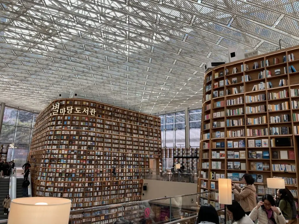 Le lendemain (dernier jour complet pour moi), je passai la majeure partie de la journée avec Anneliese et deux amies à elle. Je les ai suivies jusqu’à Gangnam où elles voulaient voir le centre commercial Co Ex, et notamment l’aquarium présent à l’intérieur, ainsi que la célèbre Starfield Library, bien connue des influenceurs Instagram. En fin de journée, après un diner au restaurant avec le Kwan Jang Nim et quelques autres pratiquants, Kim Ji-Seon (candidate Sa Dan au Ko Dan Ja) suggéra que l’on monte à Namsan, pour une petite marche digestive. Ce fut plutôt une longue et laborieuse ascension, mais le panorama au sommet valait le coup de transpirer.