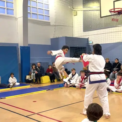 Les élèves se sont affrontés dans une compétition de forme (hyung), de combat (deryon), de rédaction et de dessin. La casse (kyok pa) était proposée aux élèves afin qu’ils expriment l’efficacité de leur technique sur une surface rigide en une tentative unique. Cela a donné lieu à quelques beaux moments d’enthousiasme du public.